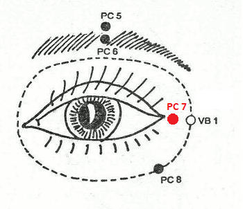 на 0,1 и.ц, кнаружи от латерального угла глаза.