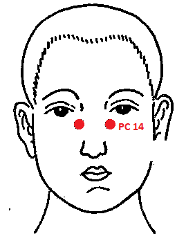 ниже внутреннего угла глаза на 0,5 и. ц.
