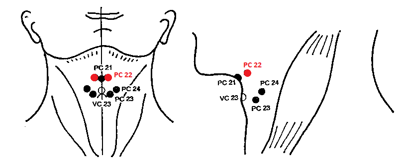 две точки на0.3 и. ц. латеральнее РС 21 ШАН-ЛЯНЬ-ЦЮАНЬ.