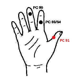 РС91 МУ-ЧЖИ-ЦЗЕ-ХЭН-ВЭНЬ - на ладонной поверхности 1-го пальца, в середине поперечной межфаланговой складки ![]() | ||||||