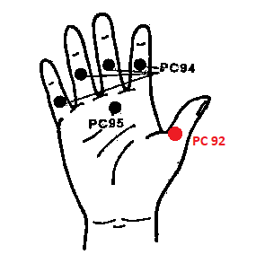 РС92 ФЭН-ЯНЬ — на ладонной поверхности 1-го пальца, у наружного края поперечной межфаланговой складки