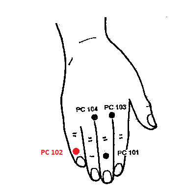 РС102 СЯО-ГУ-КУН —на тыльной поверхности 5 го пальца в середине складки дистального межфалангового сустава
