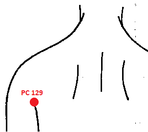 РС129 ХОУ-Е—на заднем крае подмышечной складки. Точка определяется при приведенном к туловищу плече