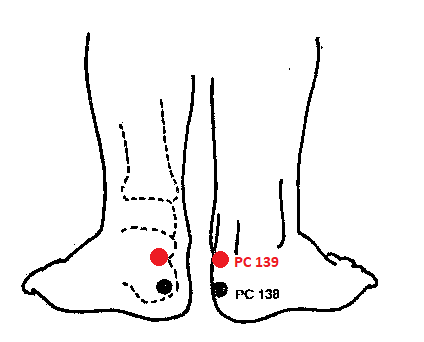 РС139 ЦЮАНЬ ШЭН-ЦЗУ - на задней поверхности пятки, у середины верхнего края пяточной кости на ахилловом сухожилии