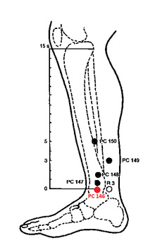 РС146 НЭЙ-ХУАЙ ЦЗЯНЬ — на наиболее выступающей части медиальной лодыжки