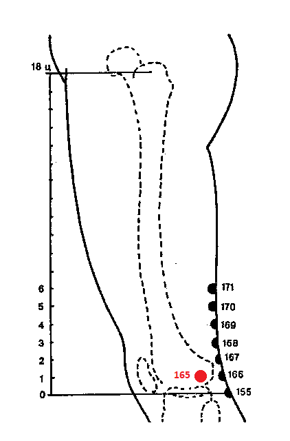 РС165 ЧЭН-ГУ — на наружной поверхности колена и наиболее выступающей части наружного надмышелка бедренной кости. Точка расположена на меридиане желчного пузыря, на 1 п. ц. выше уровня нижнего края надколенника