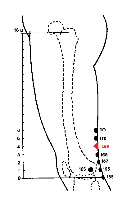 РС169 СЫ-ЛЯНЬ — на 4 п. ц. выше наружного края подколенной складки