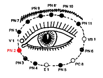 PN 2 СЯ-ЦИН-МИН (ЦИН-СЯ) — на 0,5 см ниже и кнутри от точки V 1 ЦИН-МИН, на нижнем крае орбиты