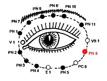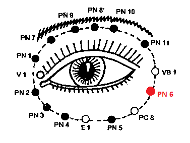 PN 6 ЦЗЯНЬ-МИН 3 — на нижнем крае орбиты, на 0,8 см латеральнее и выше PC 8 ЦЮ-ХОУ