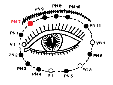 PN 7 ЦЗЯНЬ-МИН 4 — на верхнем крае орбиты, на 0,8 см в латерально- верхнем направлении от PN 1 ШАН-ЦИН-МИН