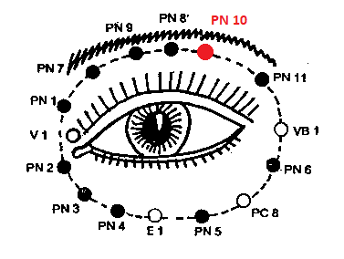 PN 10 ЦЗЭН-МИН 2 — на верхнем крае орбиты, на 0,5 см латеральнее PN 8 ШАН-МИН