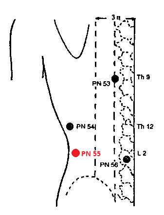 PN 55 ВЭЙ-ШУ — на 4,5 и.ц. кнаружи от остистого отростка 2-го поясничного позвонка