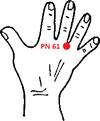 PN 61 НЮЕ-МЭНЬ — на тыльной поверхности кисти, между 3-м и 4-м пальцами, в межпальцевом промежутке, на границе «белой и красной» кожи
