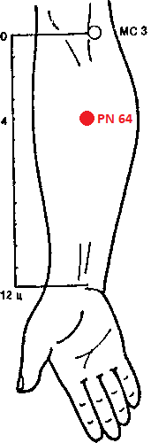 PN 64 СИ-ШАН — на 4 п.ц. дистальнее точки МС 3 ЦЮЙ-ЦЗЕ