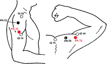 | PN 72 ЦЗЯНЬ-МИН — на наружной поверхности плеча, на 0,5 и.ц. выше и кзади от точки GI 14БИ-НАО | ||||||