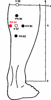 PN 84 ЦЗЮ-ВАЙ-ФАНЬ 2 — на 1 п.ц. медиальнее V 57 ЧЭН-ШАНЬ