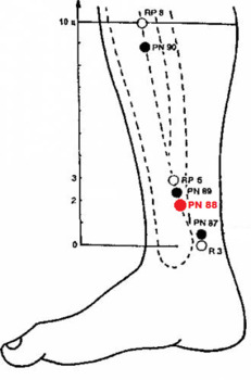PN 88 ГАНЬ-ЯНЬ-ДЯНЬ (ГАНЬ-ЯНЬ) - на 2 п.ц. проксимальнее наиболее выступающей части медиальной лодыжки