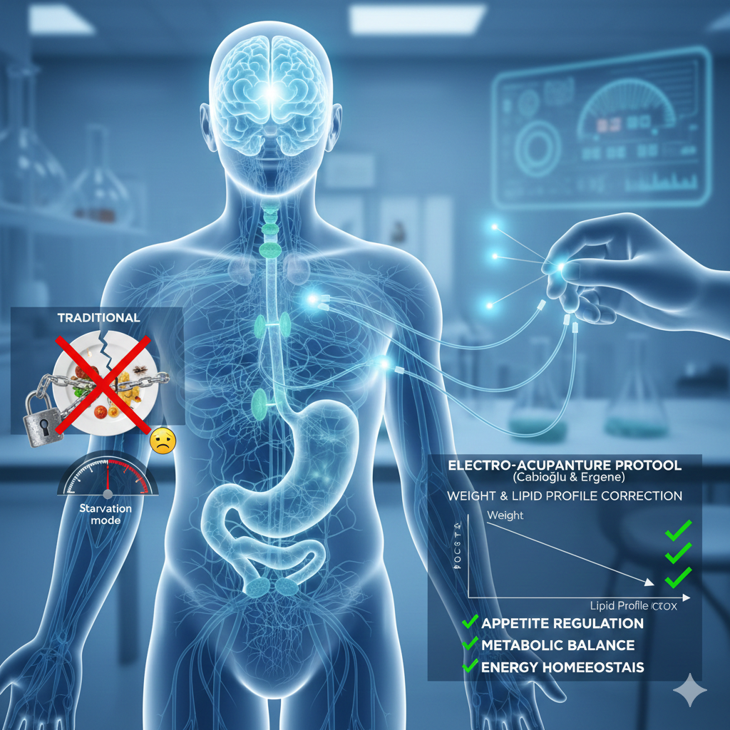 Ожирение сегодня признано не просто проблемой избытка жировой ткани, а сложным нейроэндокринным расстройством, при котором нарушаются механизмы регуляции аппетита и энергетического гомеостаза. Традиционные методы, такие как ограничение калорий, часто активируют защитную реакцию организма на «голодание», усиливая чувство голода и замедляя метаболизм. В этом контексте протокол электроакупунктуры (ЭА), разработанный турецкими учеными Джабиоглу и Эргене, демонстрирует впечатляющие результаты в коррекции веса и липидного профиля.