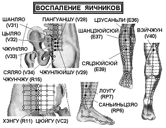 Перечень акупунктурных точек для лечения "Воспаление яичников, бели"